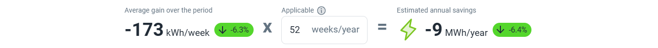 - Average savings, weekly or daily (kWh/day or kWh/week)